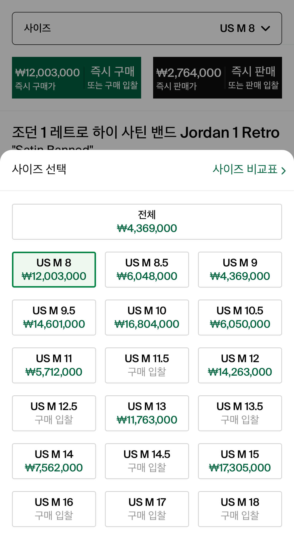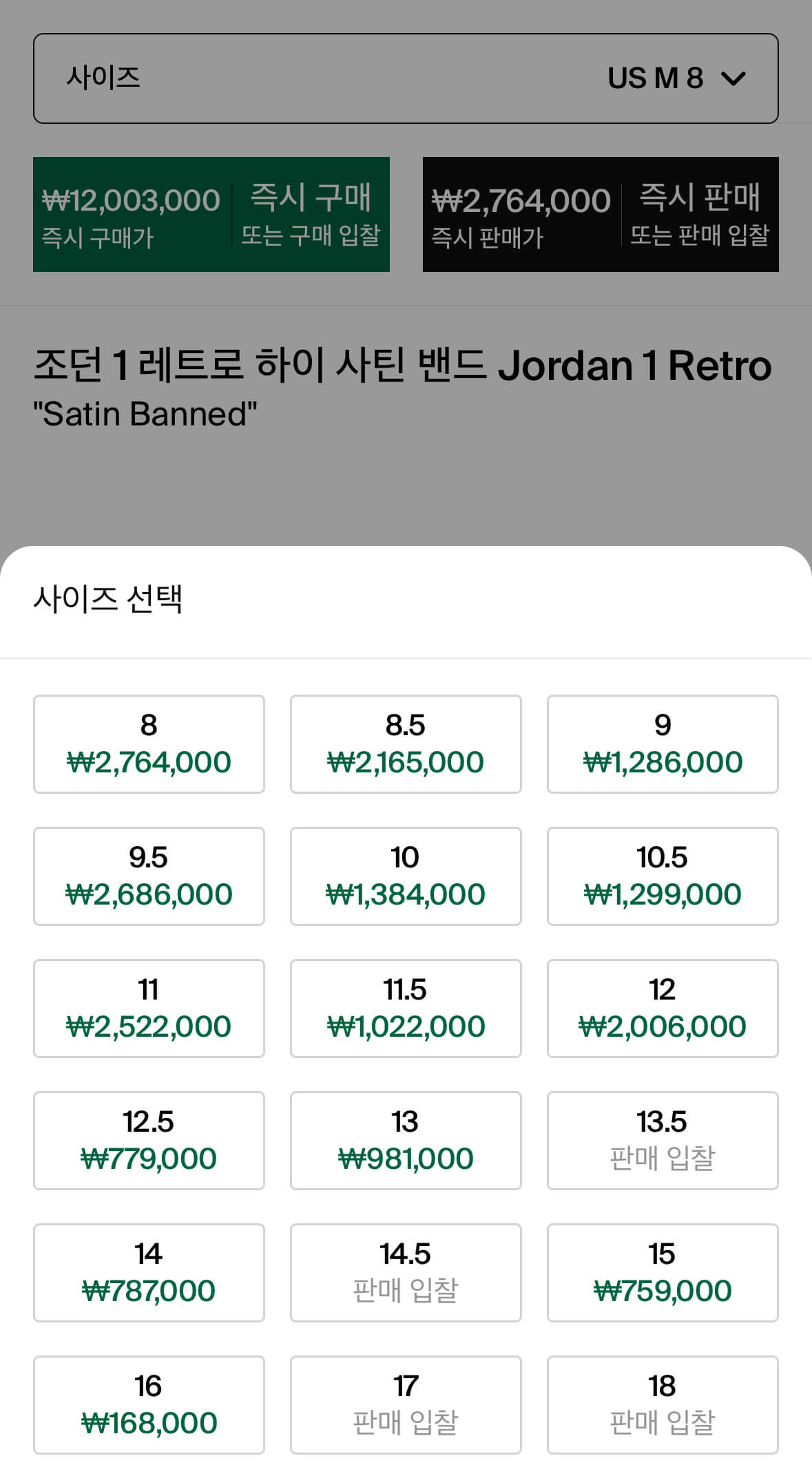 아래는 StockX 에서 판매자와 구매자가 원하는 가격 입니다.