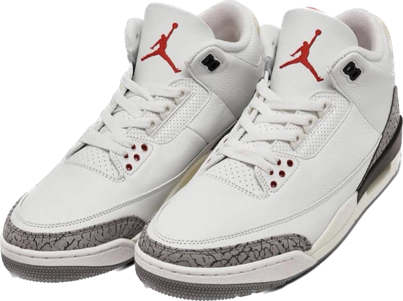에어조던 3 시멘트 (검은색 나이키 로고가 전체적으로 안정감을 가져다준다) 2022년 8월에 출시한 에어조던3 파이어레드 (시멘트와는 미드솔 뒷축과 나이키 로고의 색상이 다르다) □ 상품 정보