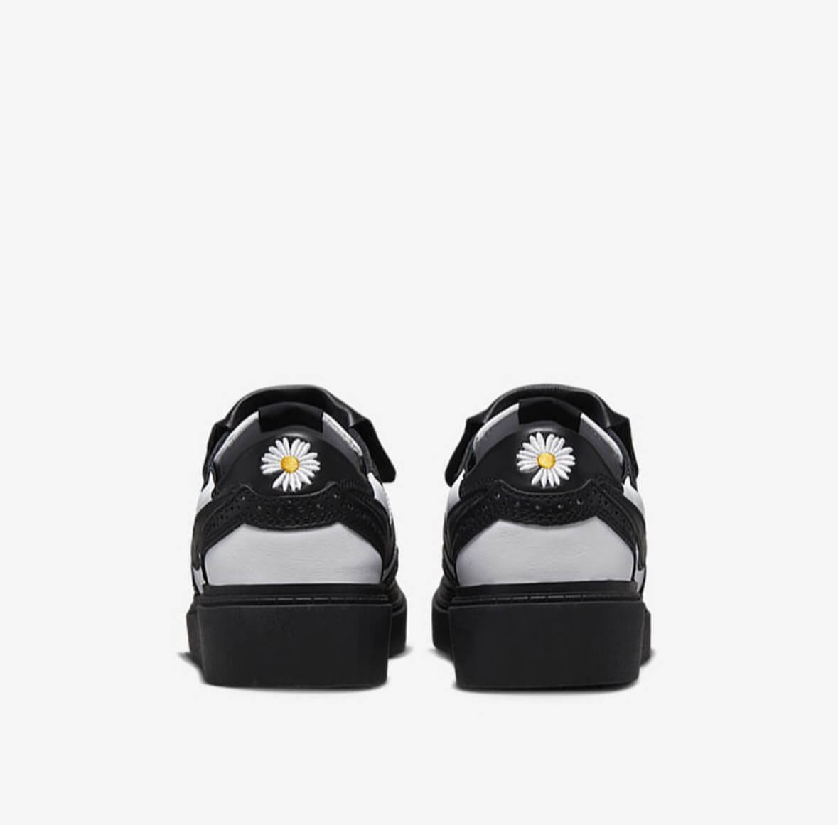 피스마이너스원의 대표적인 이미지인 꽃잎 한장이 떨어진 데이지꽃은 자수형태로 뒷축에 디자인 되었으며, 이 신발에서 유일하게 옐로우 색상이 들어가며 확실한 포인트가 되었습니다.