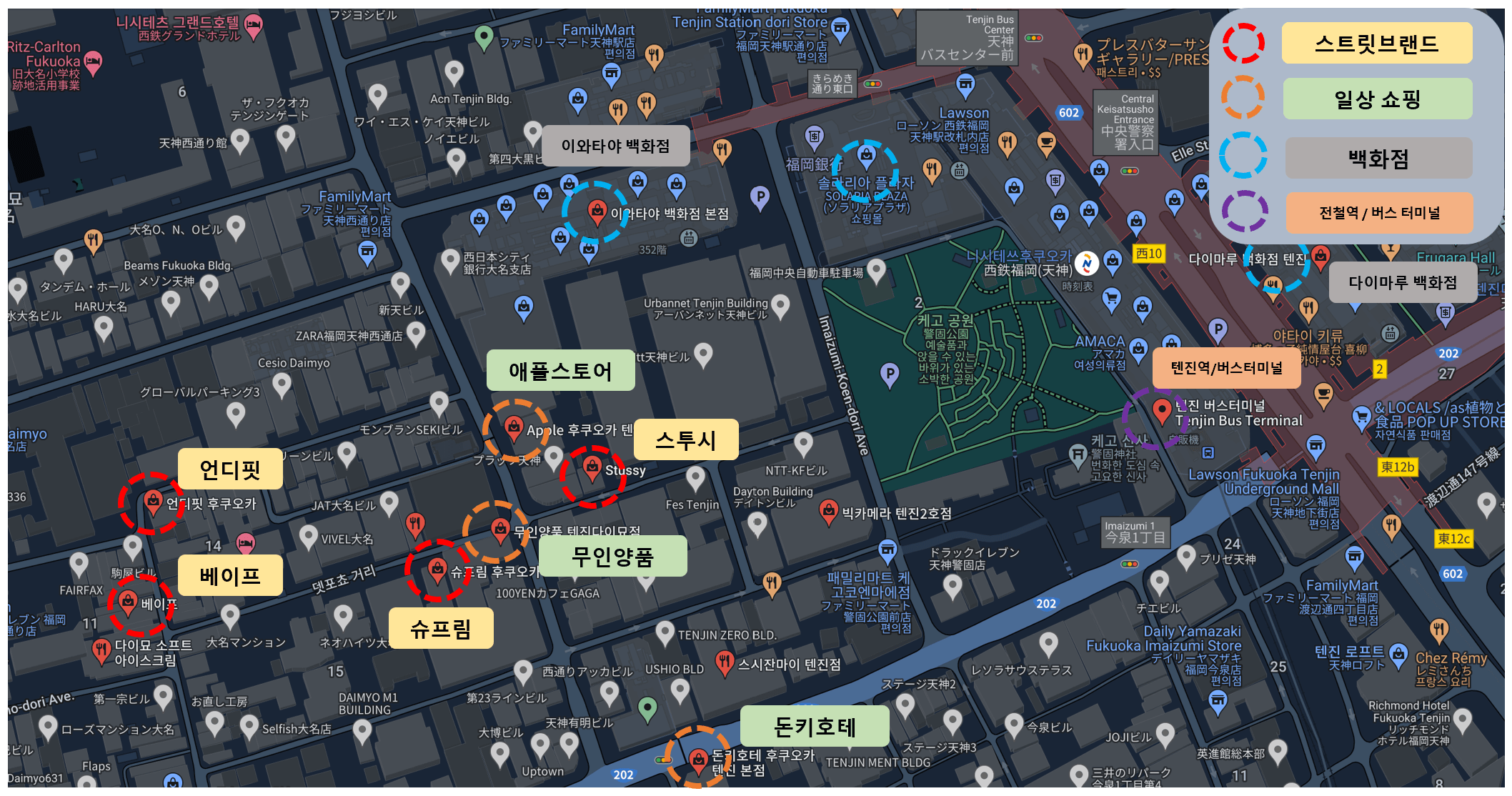 후쿠오카 텐진 쇼핑 지도 슈프림, 베이프, 스투시 매장 찾는 법