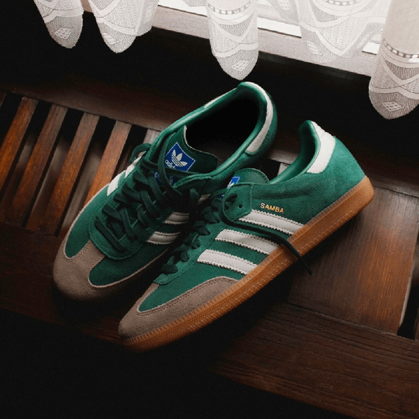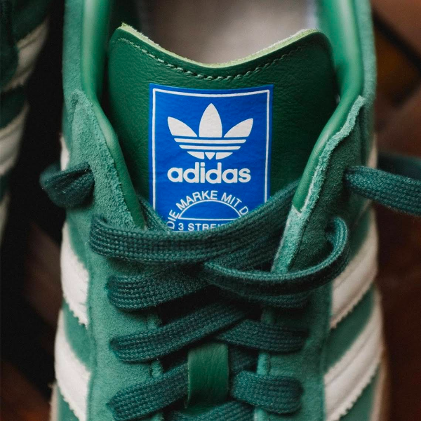삼바의 기본 모델이 채택하고 있는 소가죽 어퍼가 아닌 전체 소재를 고급스러운 스웨이드를 적용한 Chalk Green 색상의 새로운 삼바 모델 입니다.
